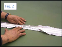 Exhaust should be as clean and dry as possible and free from oil and dust. Where a distinct finished edge is required wrap the thermolastic insulation Tape loosely around the pipe to the thickness of insulation required, normally 3 layers and cut with scissors as in fig.1. Remove from pipe and fold in foiled edges to middle. fig.2.